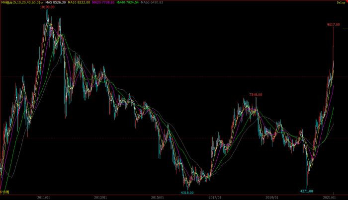 而经历2020年的上涨后,目前沪金、沪铜期货中无限接近于现货的2103合约,结算价已分别升至375.7元/克和69640元/吨。