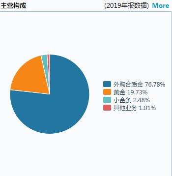 以2019年为例,山东黄金总营收为626亿元,收入全部来自外购合质金(矿金)、黄金和小金条。