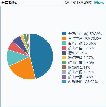 铜、金是伴生矿,所以国内头部的几家企业都是既出铜,也出金,只是业务侧重点不同,得营收构成上存在明显差异。