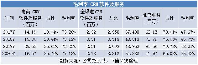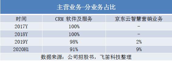 公司主营业务收入来源于CRM软件及服务和京东云智慧营销两类业务,CRM的收入占主营业务的比重超过90%,其中CRM软件及服务包括电商CRM软件及服务、全渠道CRM软件及服务,以及内嵌在CRM软件中的雁书服务。