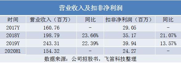 据招股书最新数据,2020年上半年,公司实现营收1.54亿元,同期扣非净利润为2427万元,同比增长13.57%。