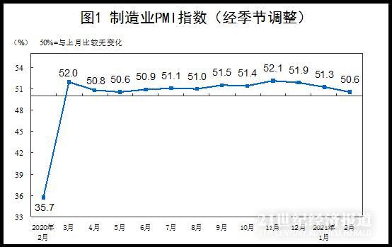2月28日,国家统计局服务业调查中心和中国物流与采购联合会发布的中国采购经理指数(PMI)显示,2月份,制造业PMI为50.6%,低于上月0.7个百分点。
