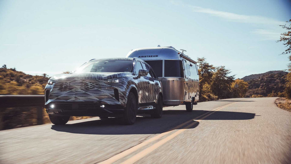 动力方面,其搭载了一款3.5L V6引擎,与之匹配的是全新9速变速箱,峰值输出达到290匹马力,除此之外,本次预告中,全新QX60身后还外挂了知名露营拖车品牌AIRSTREAM来展现QX60强大的拖曳能力。当然,图示的车型是搭载拖曳功能套件的版本,配置包括变速箱冷却器、拖车稳定功能,以及整合式拖车勾等等,据悉,全新QX60的拖曳能力增加20%,来到2,721kg的水平。