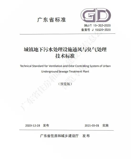 广州水投又出行业新标准!《城镇地下污水处理设施通风与臭气处理技术标准》填补国内空白