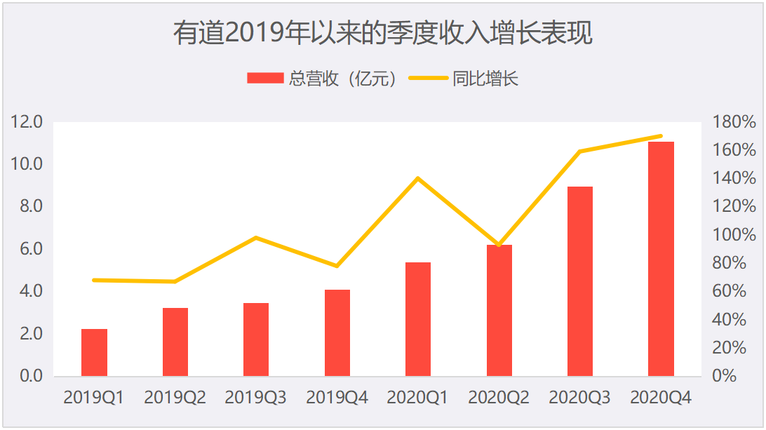 近日,有道发布了2020年Q4及全年财务报告。从财报看,Q4及全年,有道所展现的最主要趋势就是“增长”,这也是2020年在线教育行业的突出现象。