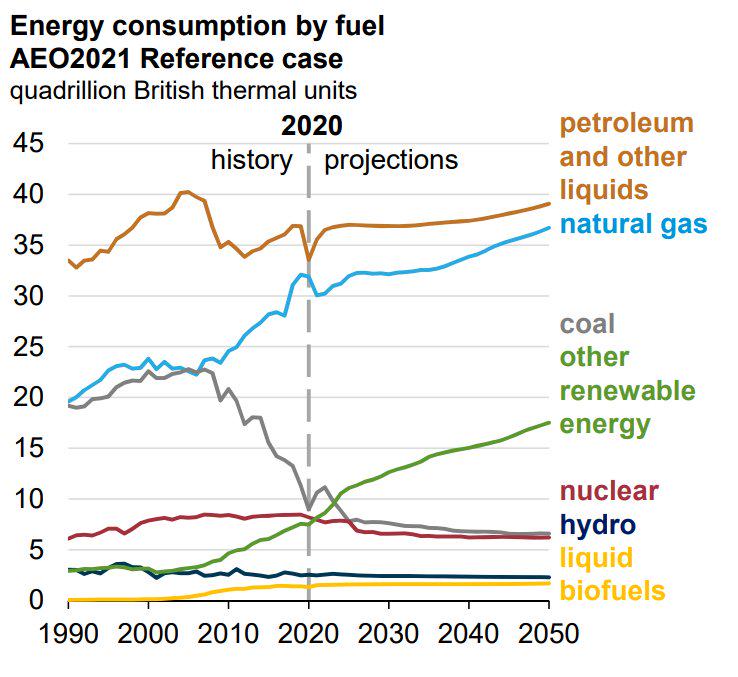 而更加根本的问题在于,石油和天然气仍然分别是美国的第一大和第二大消费能源,占了总能源消费的70%左右。巨大的占比使得其难以在短期内大量减少油气使用。