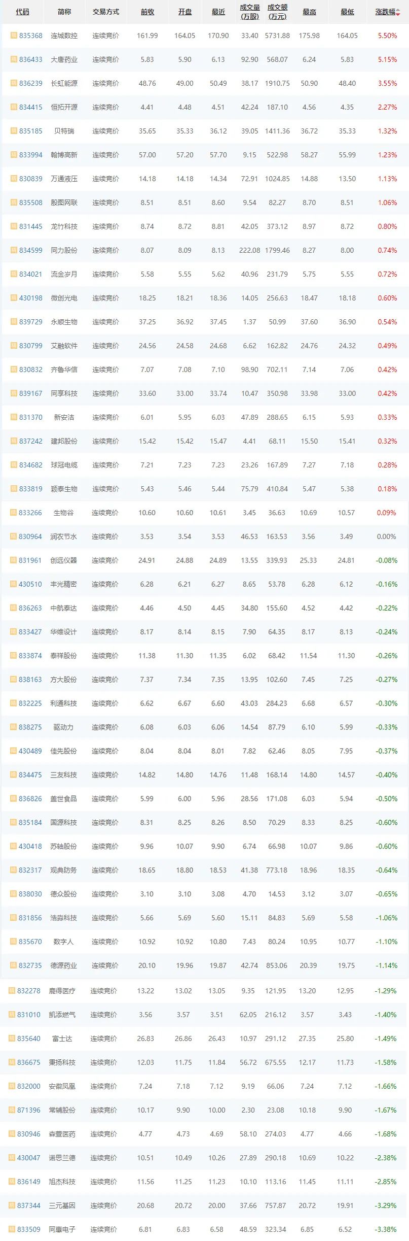截至3月2日收盘,今日成交金额为6.43亿元,精选层成交金额为2.32亿元,创新层成交金额为2.43亿元,基础层成交金额为1.69亿元;今日成交股数为9205.27万股,精选层成交股数为1625.03万股,创新层成交股数为3043.60万股,基础层成交股数为4536.64万股。