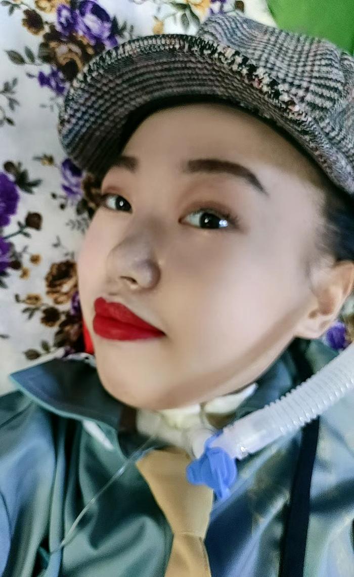 注:带着呼吸机但仍充满自信的珍妮 照片由珍妮本人提供