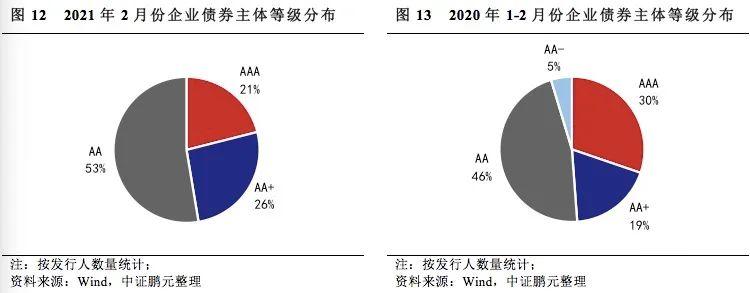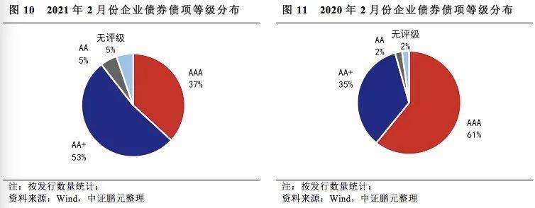 从发行主体等级看,2月AA级主体10家,占比53%,较上月上升11个百分点;AA+级主体5家,占比26%,较上月上升14个百分点;AAA级主体4家,占比21%,较上月下降20个百分点,AA-级主体本月未发行。