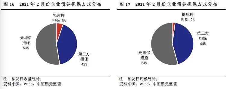 2021年2月,企业债有担保的债券共计9只,数量占比47.4%,较上月上升3个百分点,主要是低级别主体增加。从各级别增信情况看,AA级主体中选择增信发行的债券数量占比为90.0%,较上月下降10个百分点;AA+级主体中选择增信发行的债券数量降至0。