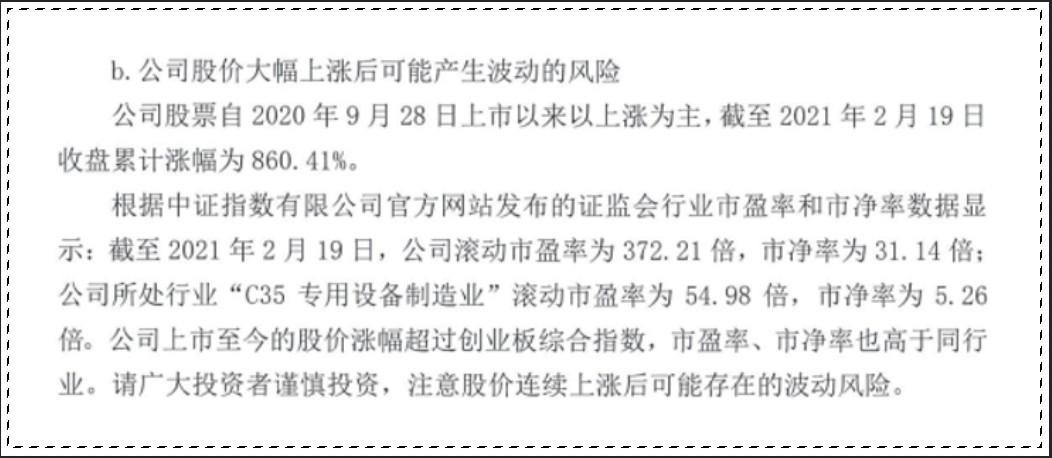 在公司回复深交所的问询函中,爱美客公司特别注明了一段关于“公司股价大幅上涨后可能产生波动的风险”提示,显然爱美客官方也似乎认为公司二级市场股价有被过分“透支”的嫌疑。