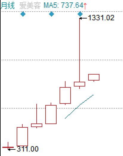 自2020年9月30日上市至今,爱美客在其股价月K线图上留下6根红线,这在同期上市的公司中绝无仅有。