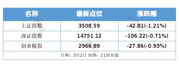 3月2日,A股三大指数高开低走,最终集体收跌,其中沪指盘中一度失守3500点大关。