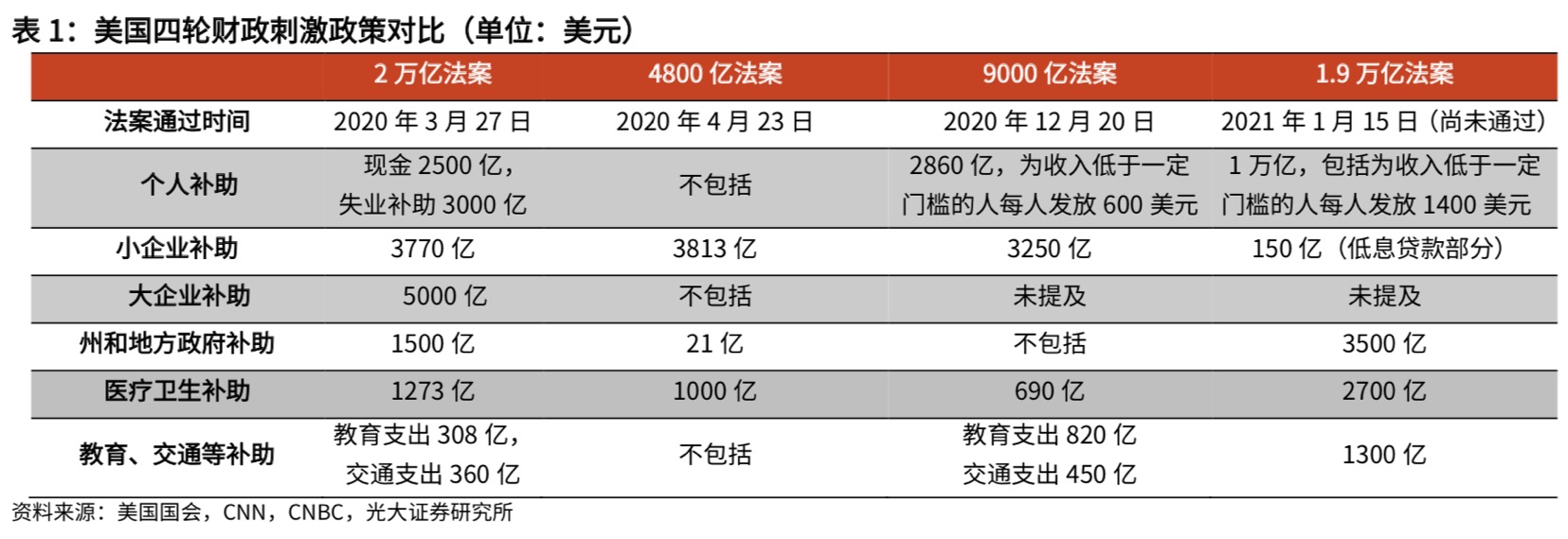 2月27日,美国众议院投票通过拜登1.9万亿美元财政刺激法案,将移交参议院投票,离最终通过仅剩最后一公里。