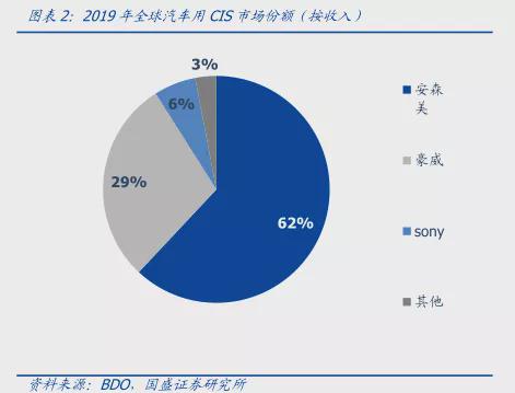 此外,随着新能源汽车行业快速发展,豪威科技在汽车CIS芯片领域的优势将进一步强化。早在2008年,豪威科技就量产了第一颗车用图像传感器,比竞争对手Sony领先了整整10年。截至目前,豪威科技CIS芯片已经广泛应用于后视摄像 (RVC)、ADAS(驾驶辅助系统)、全方位视图系统 (SVS)等车载系统,下游客户涵盖奔驰、宝马、奥迪、通用等主流车厂。按照2019年度销售额计算,豪威科技汽车用CIS芯片全球市场份额达到29%,位居全球第二位,索尼市场份额仅有6%。