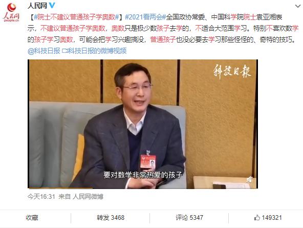 3月4日晚间,#院士不建议普通孩子学奥数#这一话题登上新浪微博热搜第一位。