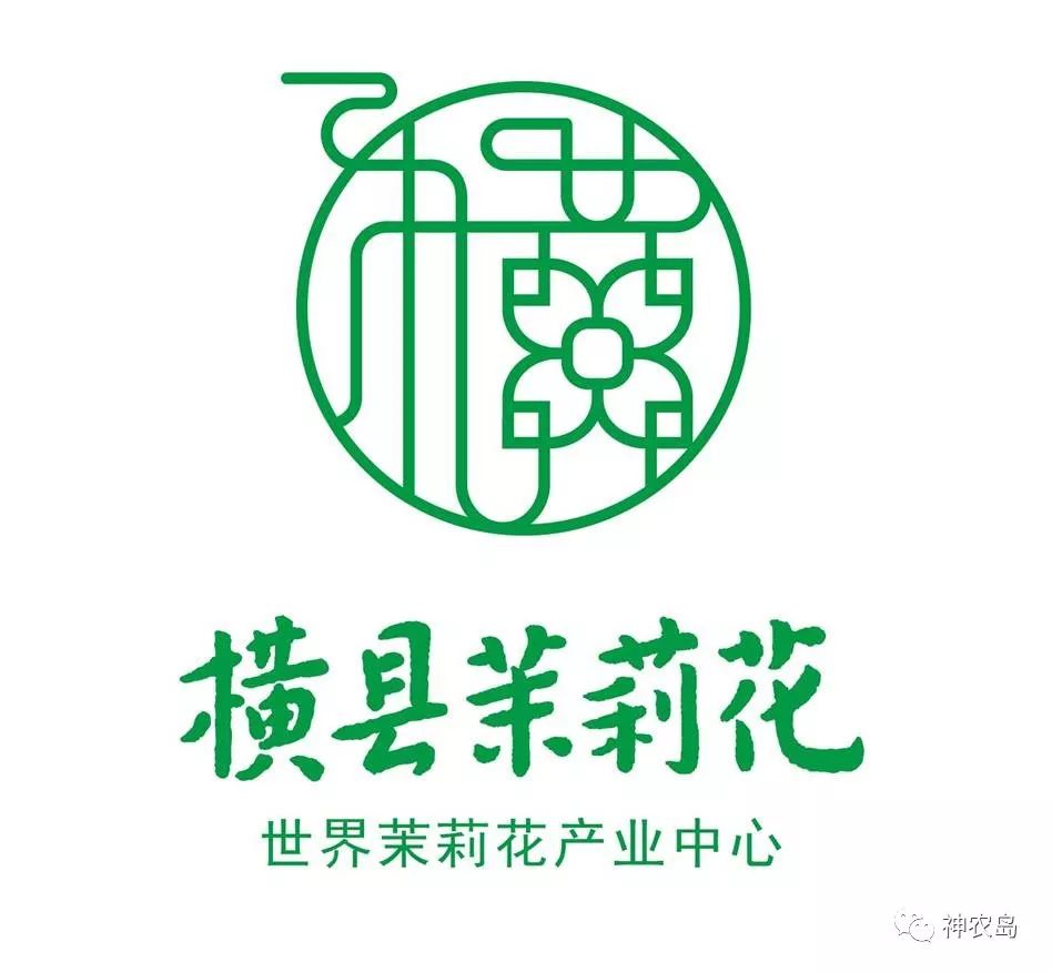 横县茉莉花的品牌标志,源自对南方庭院建筑中圆形窗花与品牌名称“横”字的公共资产组合。