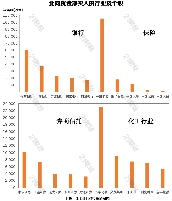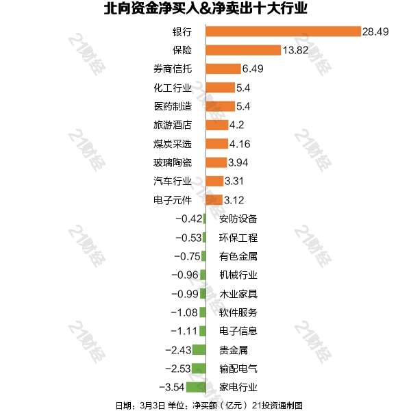 据21投资通(微信号ID:touzit21)智能监测,3月3日,北向资金净买入90.1亿元,其中沪股通净买入64.19亿元,深股通净买入25.91亿元。