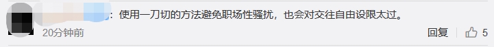 也有人表示,这在一定程度上避免了职场性骚扰。 “我觉得大大方方规定出来挺好的,职场应该有职业素养,就应该有合理的距离和界限。”有网友坦言,自己所在的职场中有领导经常在工作场合或工作餐时开“黄腔”,下属碍于面子还要符合或者假笑。这样的规定一出,在一定程度上或许可以避免职场性骚扰。
