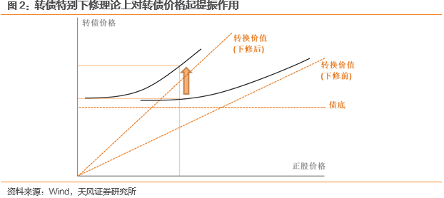 转债下修通常发生在正股价格长期低于转股价且难以向上突破,成功转股可能性较低的背景下,发行人为避免到期偿还债务或面临回售压力,按法律法规确定的程序、在满足相应发行条款的前提下降低转股价,导致转股可能性提升。由于转股价下降将导致每张转债可转换的股数增加,转债自身价值将得到不同程度的提振,因而存在博弈空间。