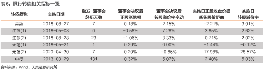 金融业转债下修还有一个动机,即通过转股补充资本金。目前已有中行、无锡(2次)、江银(2次)、常熟4只银行转债下修,除中行转债下修提议发生在触发后131天外,其他各次均不超过30天,平均用时相对较短。此外,案例相关标的均无回售条款,体现发行人促转股的强烈意愿;而且银行转债的规模通常较大,这也是促进转股的因素之一。