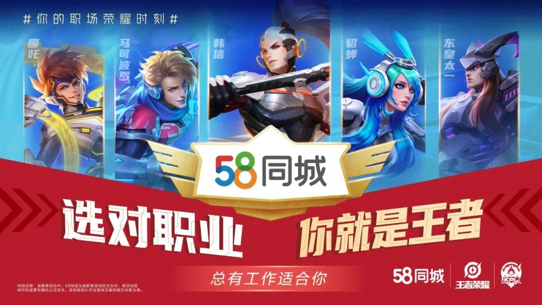为了给年轻人求职打CALL,58同城与国民手游《王者荣耀》顶级赛事——王者荣耀职业联赛达成深度合作。