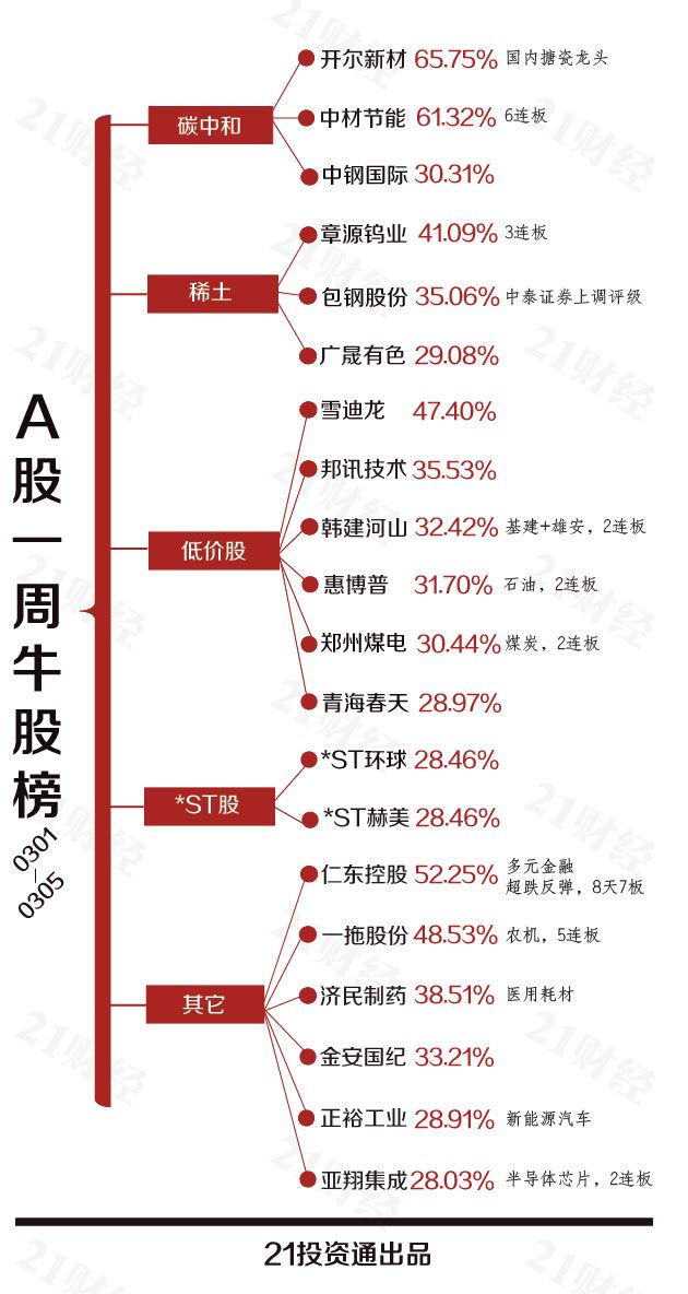 纵观20大牛股,碳中和概念股、超跌低价股无疑为市场的“宠儿”。从20大牛股的最新股价来看,除了广晟有色之外,其它牛股最新价均不超过20元,更有13股最新股价不超过10元,甚至包括开尔新材、中材节能两大碳中和概念股在内。