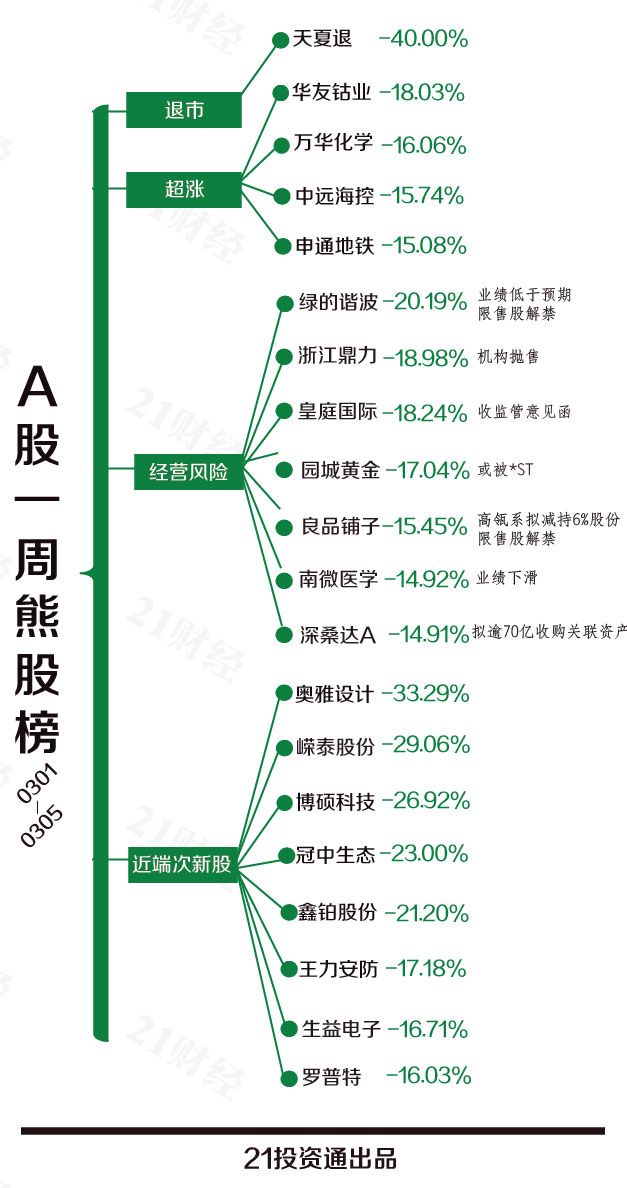 值得注意的是,次新股板块分化,本周熊股榜单中,就有8只为2月份上市的近端次新股。