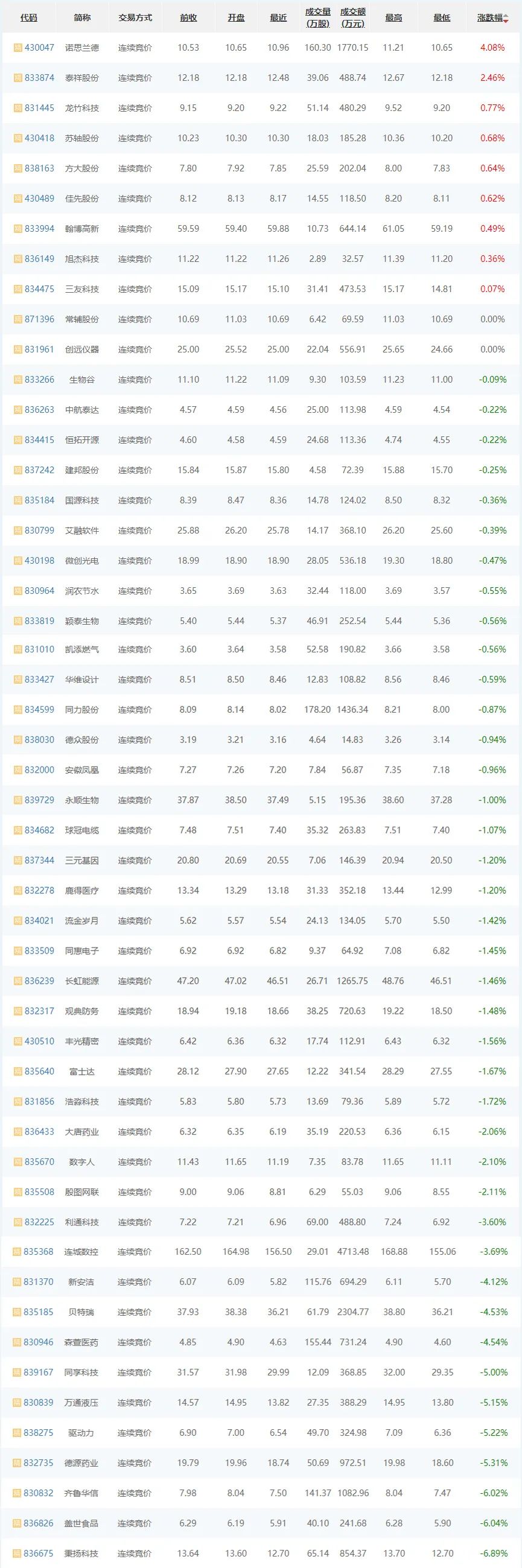 截至3月8日收盘,今日成交金额为5.02亿元,精选层成交金额为2.58亿元,创新层成交金额为1.43亿元,基础层成交金额为1.00亿元;今日成交股数为9358.89万股,精选层成交股数为1925.42万股,创新层成交股数为2400.68万股,基础层成交股数为5032.79万股。
