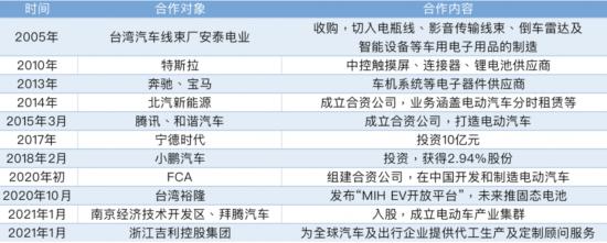 1月13日,富士康科技又与吉利控股签署战略合作协议,双方将成立合资公司,为全球汽车及出行企业提供代工生产及定制顾问服务,包括但不限于汽车整车、零部件、智能控制系统、汽车生态系统和电动车全产业链全流程等。