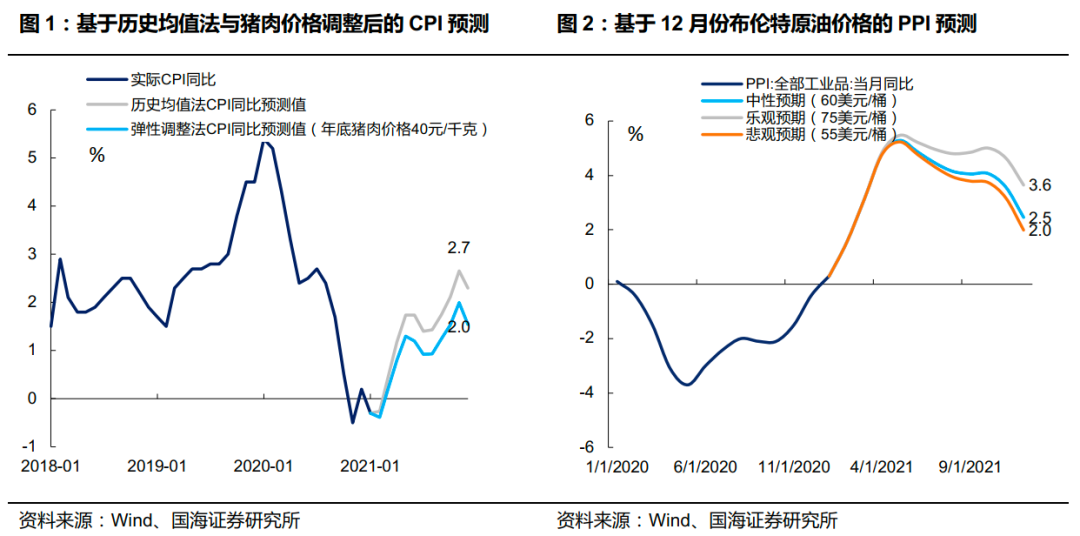 近期通胀行情在股市、债市、大宗商品市场普遍演绎,受到投资者格外关注。根据前期测算(详情请参看近期通胀系列报告),我们预计 2021 年全年 CPI 增速温和回升,但受制于猪价下行,高点可能不会超过 2%;PPI 方面,5 月份 PPI快速上行至高点,随后走势将取决于大宗商品价格的未来变化。若油价继续上行,PPI 将高位磨顶,若油价上涨停滞乃至回落,PPI 将逐步回调。