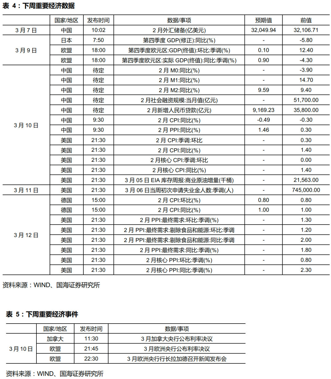 6、下周重要经济数据和事件
