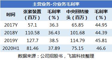 报告期内,公司的主营业务毛利分别为1.29亿元、2.21亿元、2.53亿元和1.63亿元,主营业务毛利率分别为40.2%、39.86%、41.71%和41.65%,整体波动上升。由上面的表格可以看到,公司主营业务毛利率的上升是因为两大主业张紧装置、中央回转接头的毛利率均上升。