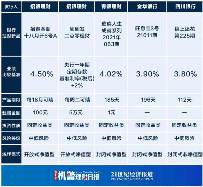 据南财理财通数据显示,今日银行理财新品以固定收益类为主,兴银理财、工银理财、中国建设银行、东莞银行、龙江银行等有混合类产品发售。