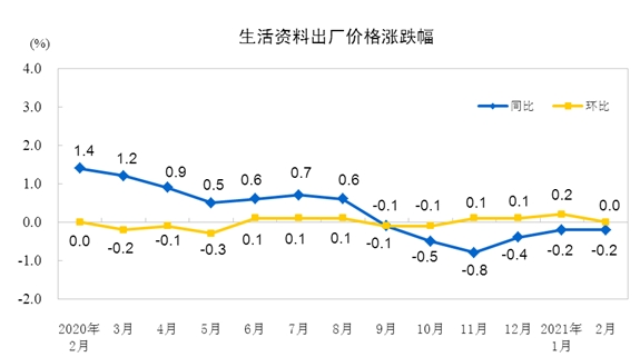 国家统计局:2月份CPI同比下降0.2%,PPI同比上涨1.7%(附解读)