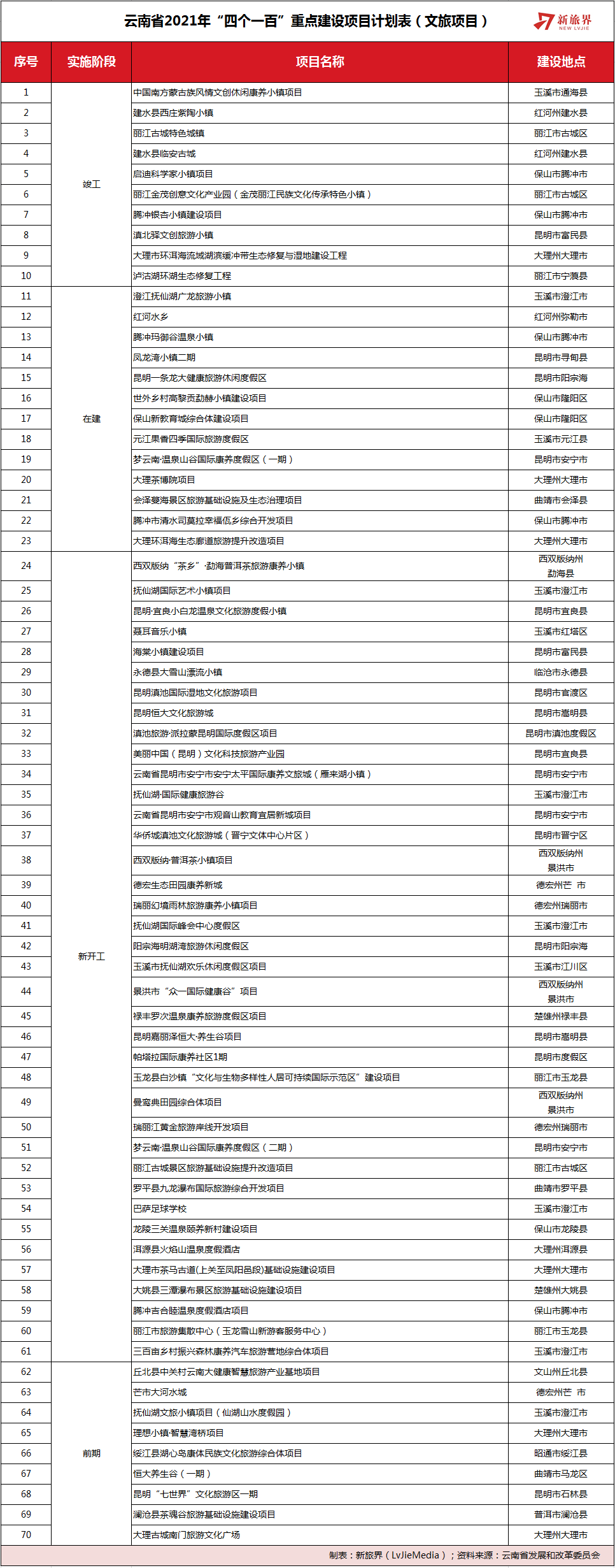 图说:云南省2021年重点文旅项目 来源:《云南省2021年“四个一百”重点建设项目计划表》