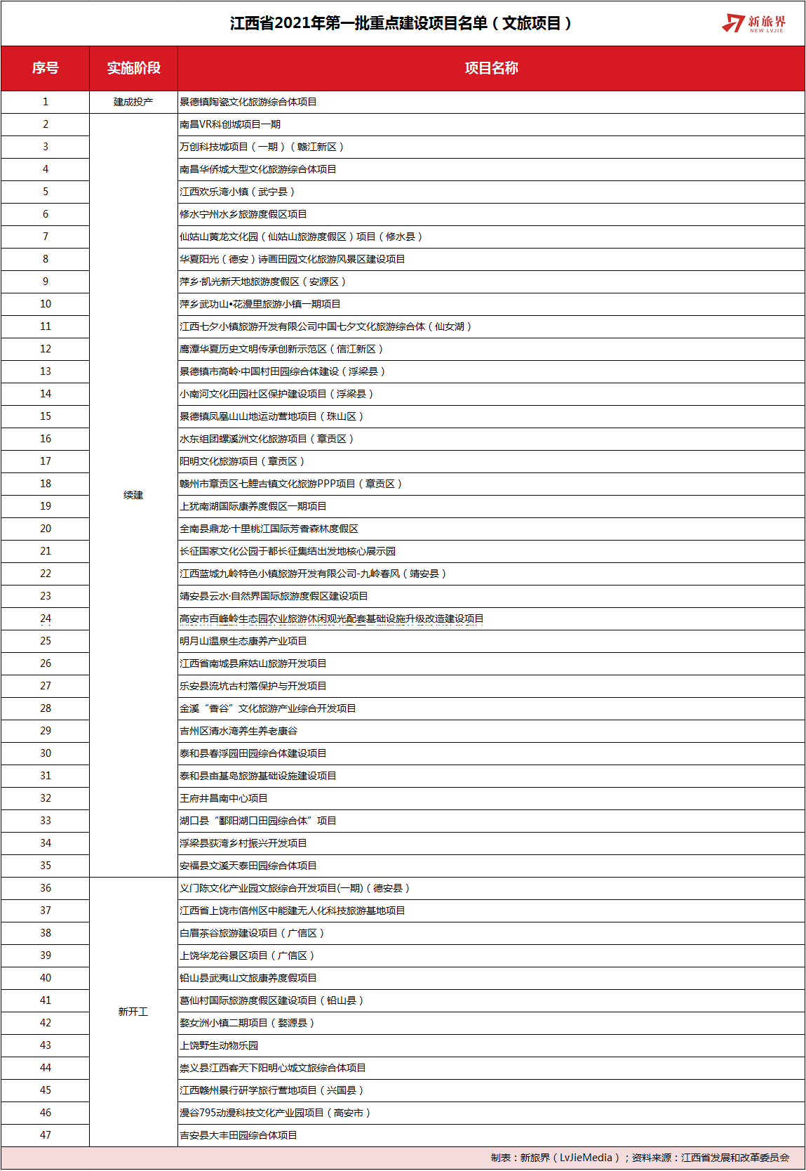 图说:江西省2021年重点文旅项目 来源:江西省《2021年第一批省重点项目计划名单》