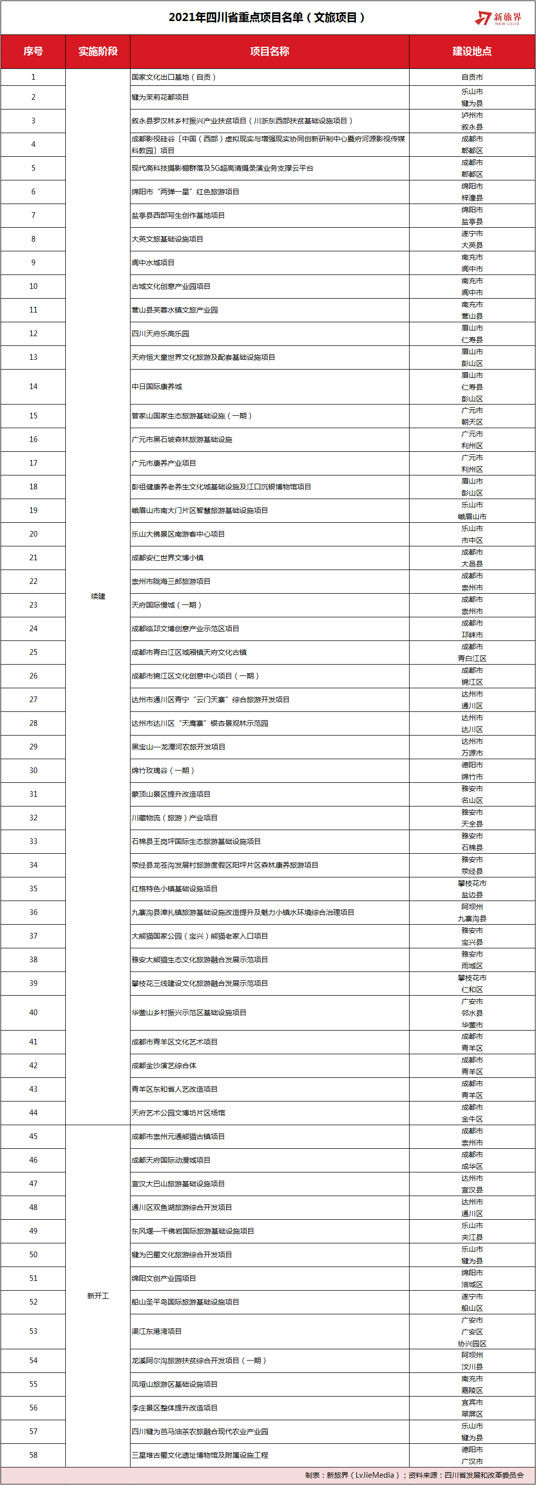 图说:四川省2021年重点文旅项目 来源:《2021年四川省重点项目名单》