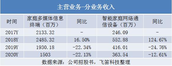 以下简析家庭多媒体信息终端和智能家庭网络通信设备的收入变动情况。