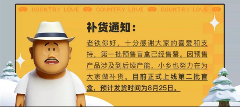 在官方旗舰店上查询可以发现,256元的预售款盲盒,从预付定金到发货,中间要等大约半年,时间成本如此之高,却丝毫不影响《乡爱》粉的消费热情,首售即一抢而空,可谓稀奇。
