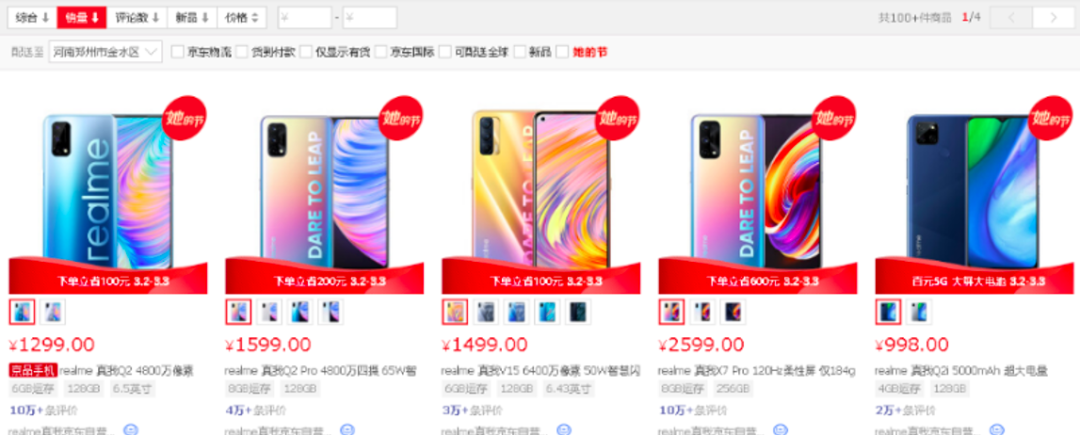 在京东搜索Realme手机按销量从高到低排序,销量最高的前三名不是最有话题热度的旗舰机型,而是品牌推出的千元价位产品,这似乎就印证了市场对于“小而美”手机品牌一向“价格与销量成反比”的看法。