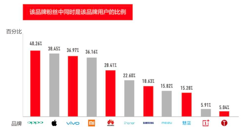 据今日头条2018年曾发布的一项数据显示,品牌粉丝同时是该品牌用户的比例中,坚果和一加成绩垫底。
