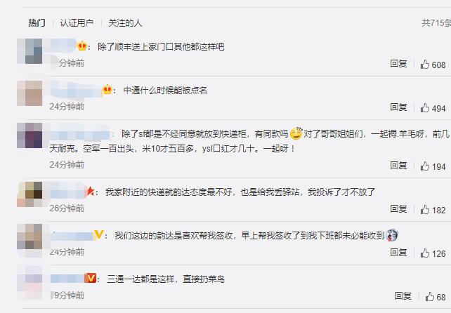 对于“韵达擅自将快递丢驿站被点名”话题,不少网友表示,除了韵达,其他快递都有类似情况。