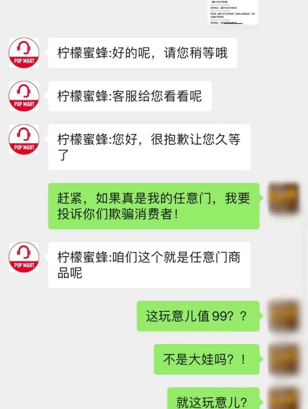 有任意门消费者找泡泡玛特官方客服沟通,认为该活动有欺骗消费者之嫌,但并没有得到满意的处理结果。
