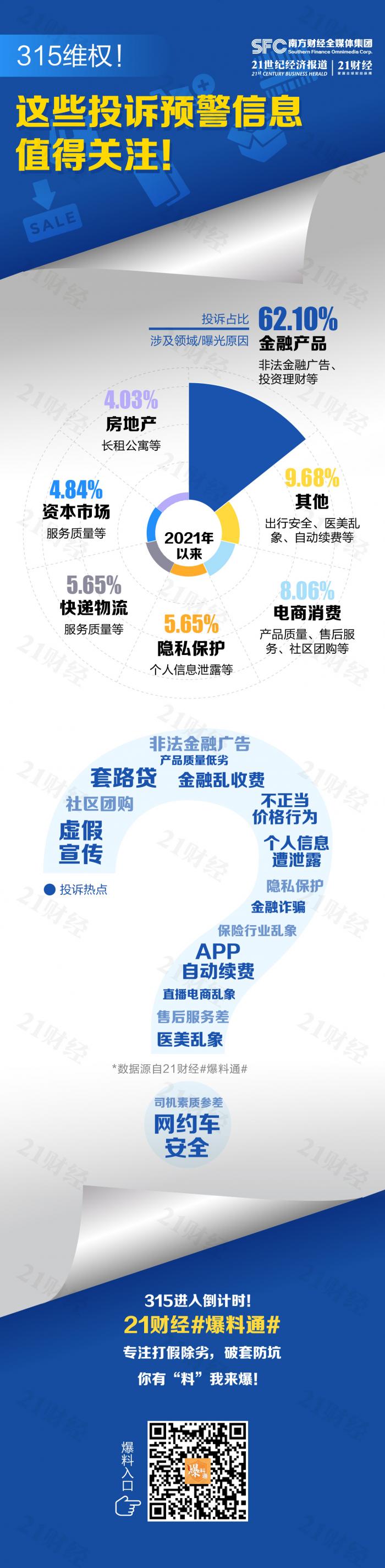 如果您遇到了任何消费维权问题,或者任何内幕消息,都可登录21财经客户端【爆料通】,把您的线索告诉我们!专注打假除劣,破套防坑,守护消费者美好生活。你有“料”,我来爆!点击进入平台>>>
