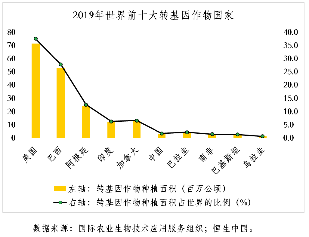 然而,伴随着激烈的争论,转基因作物的种植面积在世界范围内快速增长:2019年,全球转基因农作物种植面积已经增加到1.9亿公顷,占全球可耕地的14%。