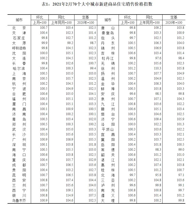 ——国家统计局城市司首席统计师绳国庆解读2021年2月份商品住宅销售价格变动情况统计数据