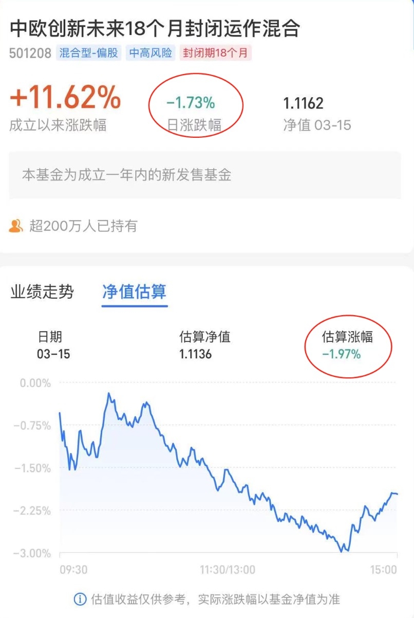 比如中欧创新未来18个月持有期,蚂蚁平台数据显示,该基金3月15日净值估值和实际净值的差距并不大。