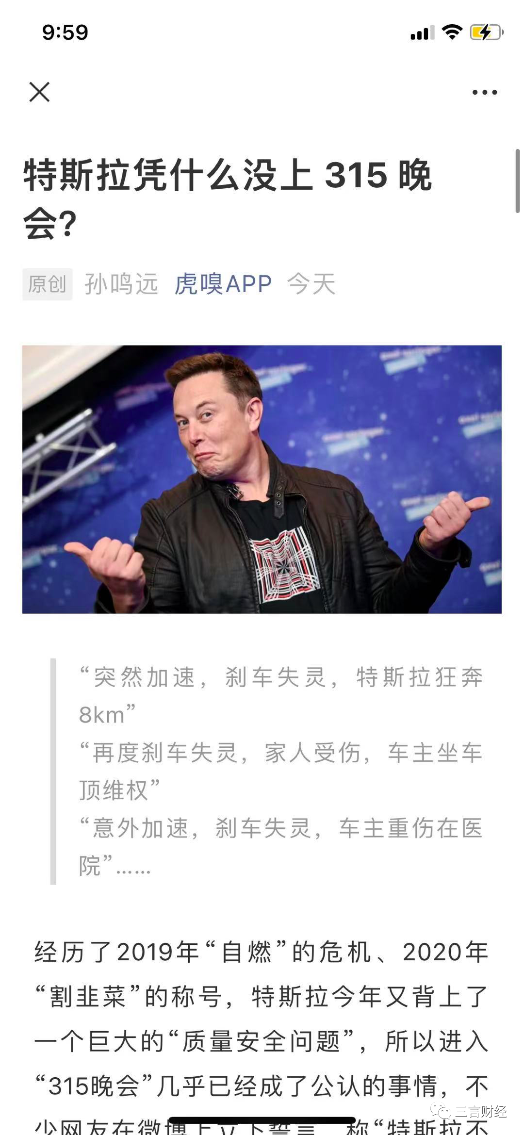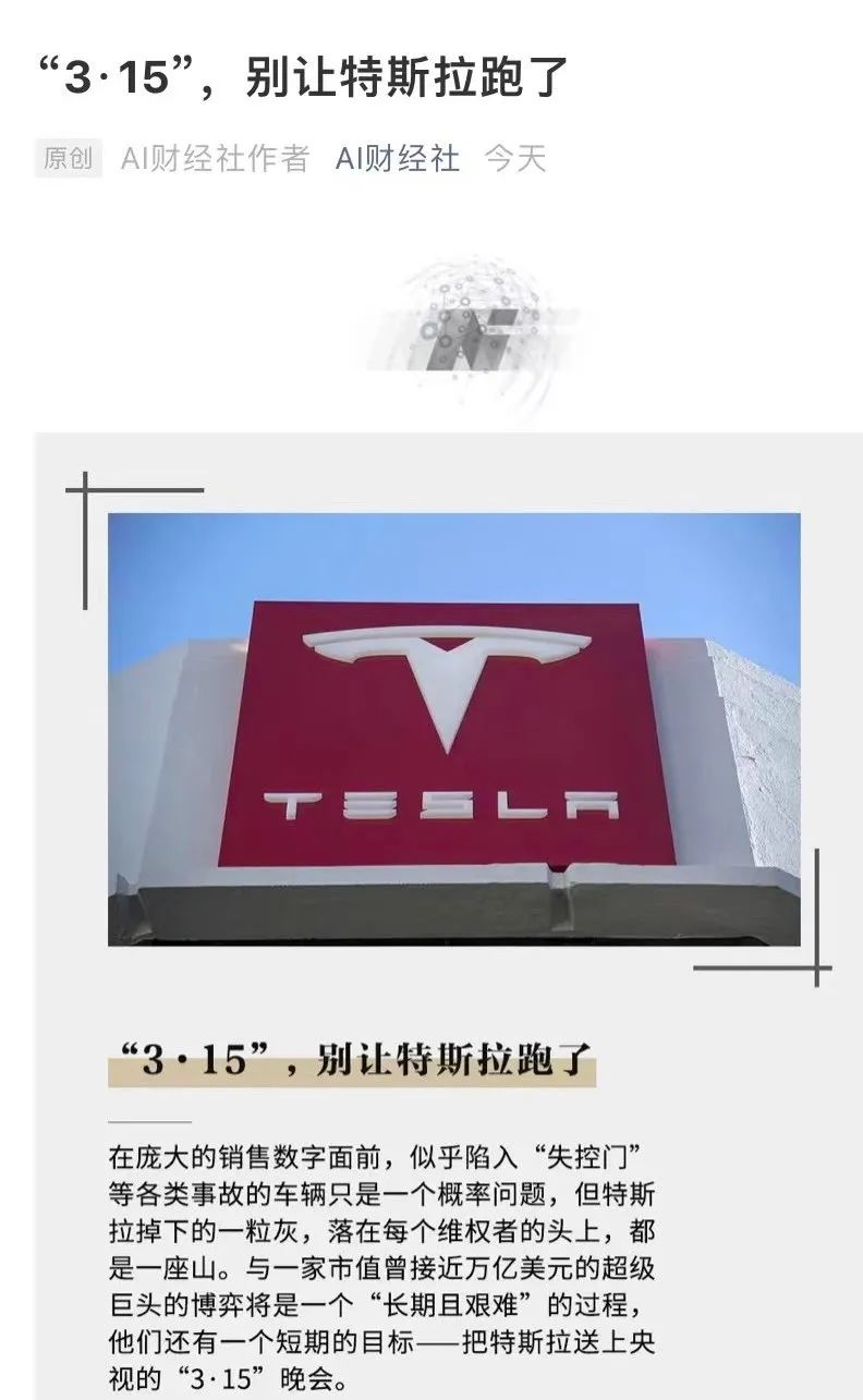 此时又有媒体发问,“特斯拉凭什么没上315晚会”?