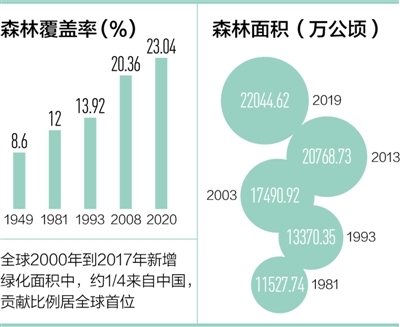 森林覆盖率超百分之二十三 苍翠绿色扮靓美丽中国